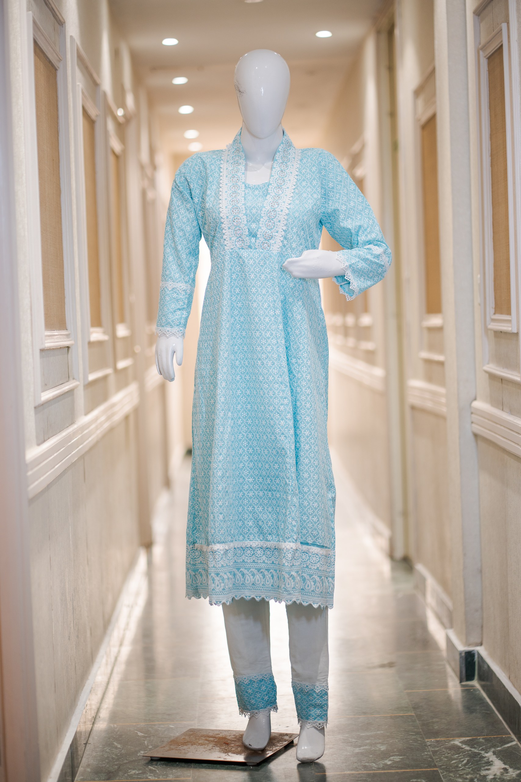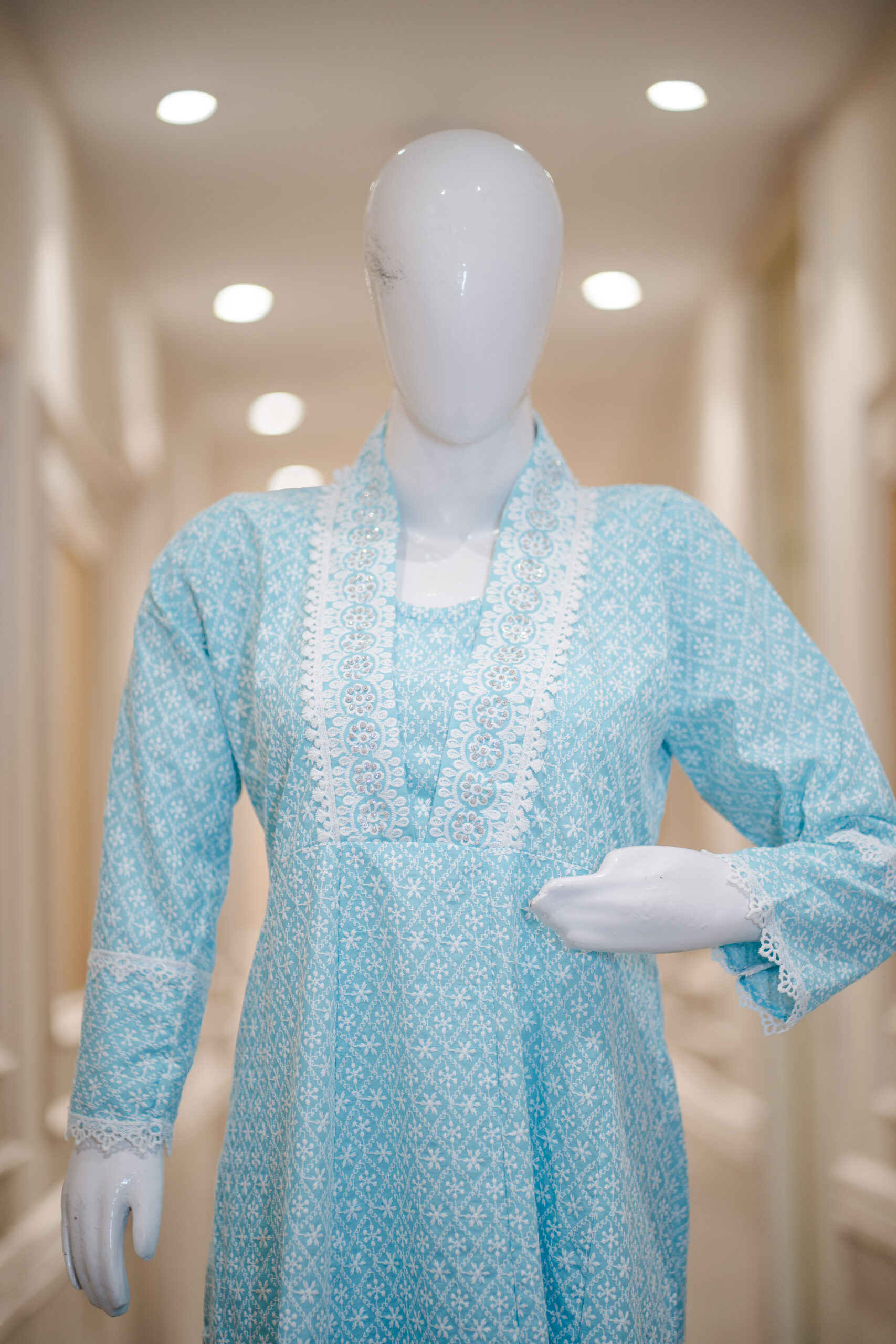 - Elegant Lace Work on Neck, Sleeves & Bottom