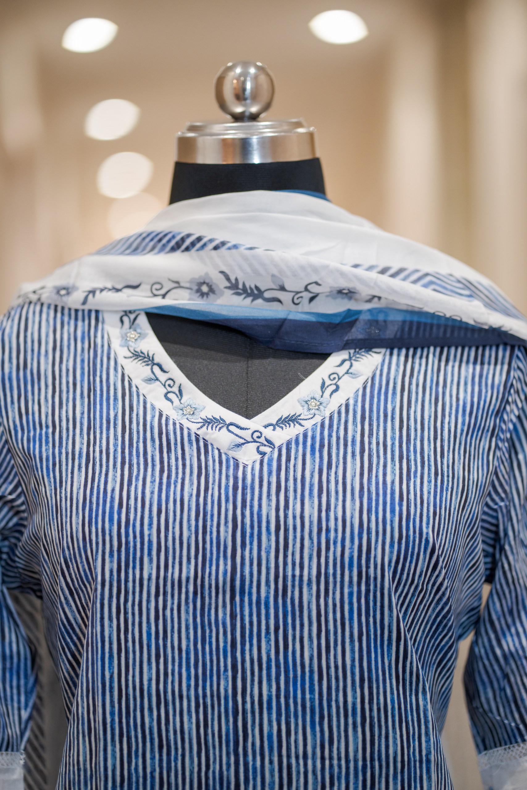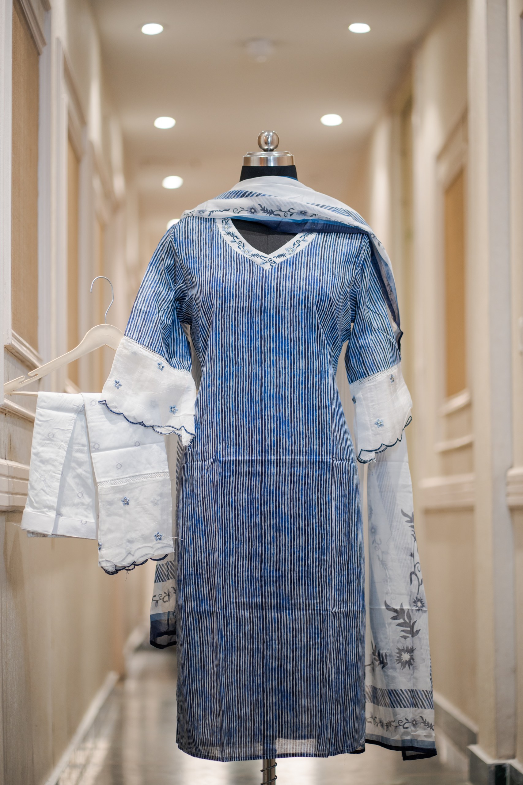 Step into elegance with this beautifully crafted Pure Heavy Cotton 3 Piece Pakistani Style Suit, designed for a graceful and sophisticated look. The kurta features fine embroidery on the neckline, enhancing its ethnic charm, while the sleeves are adorned with delicate organza lace work.