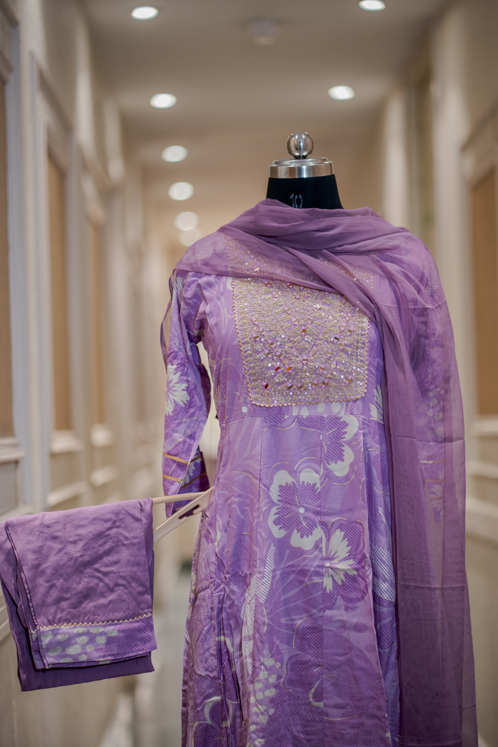 Enhance your ethnic style with this elegant pure cotton frock suit set, designed for both comfort and festive charm.