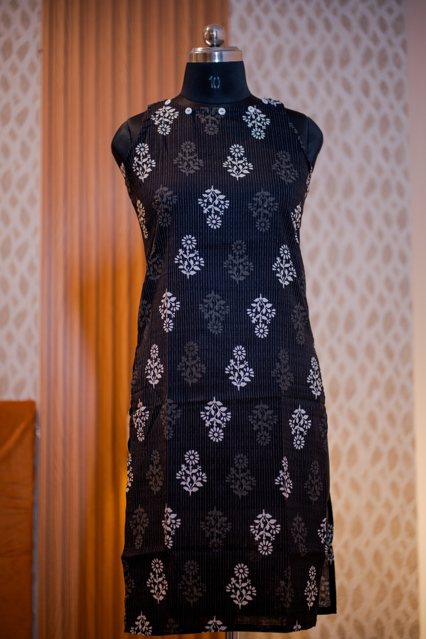 Made from soft and breathable cotton fabric, it keeps you comfortable all day long. The elegant black color with subtle white prints gives a classy and modern ethnic touch, making it easy to style with leggings, jeans, or palazzos.